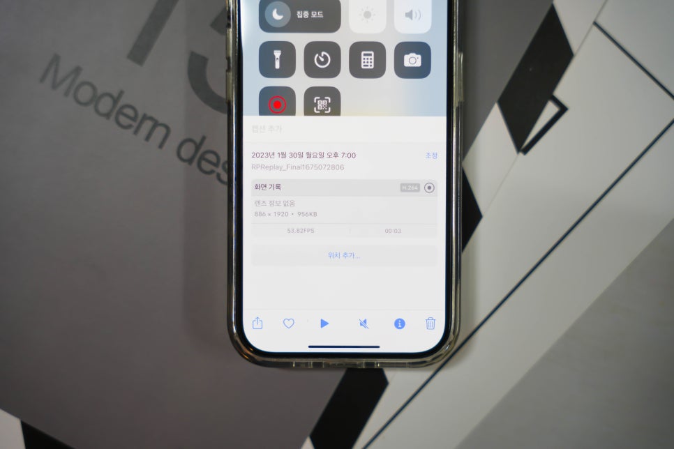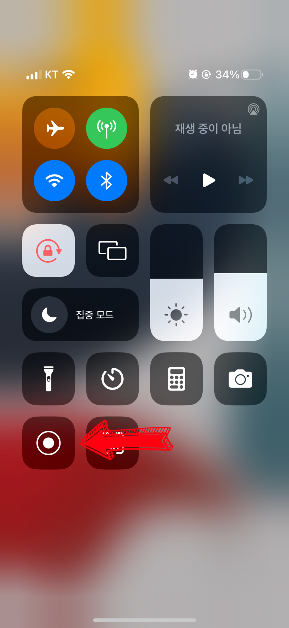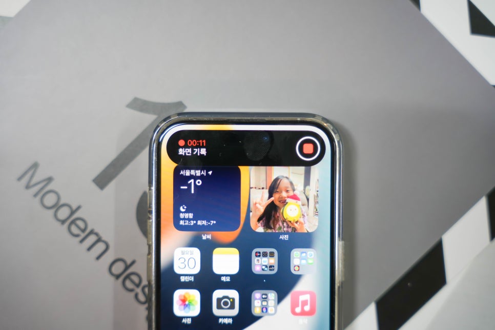 아이폰 화면 녹화는 오른쪽 위를 쓸어내려서 기록 버튼을 누르면 3초 후 녹화가 시작된다.
