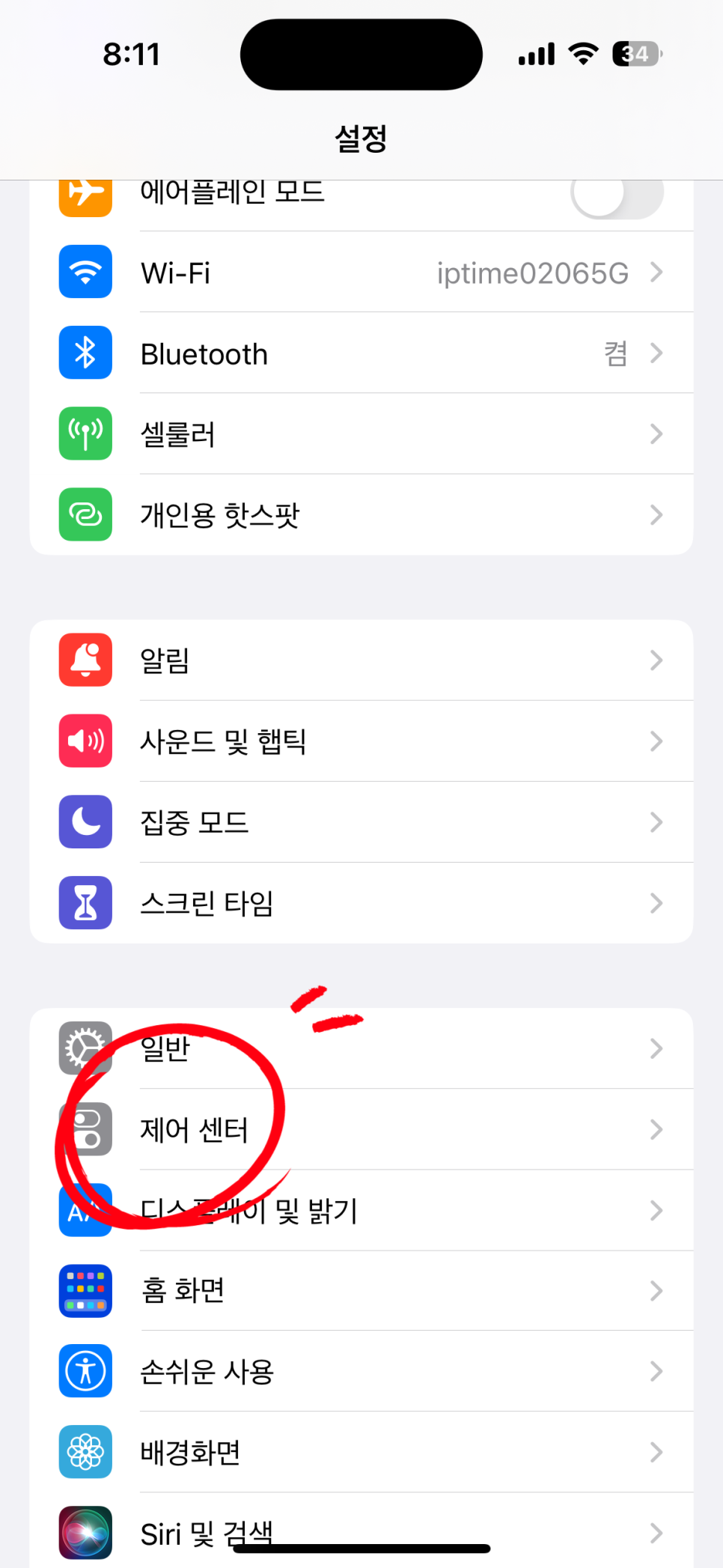 만약 기록 버튼이 없다면 설정 > 제어센터에서 항목을 추가하면 된다.