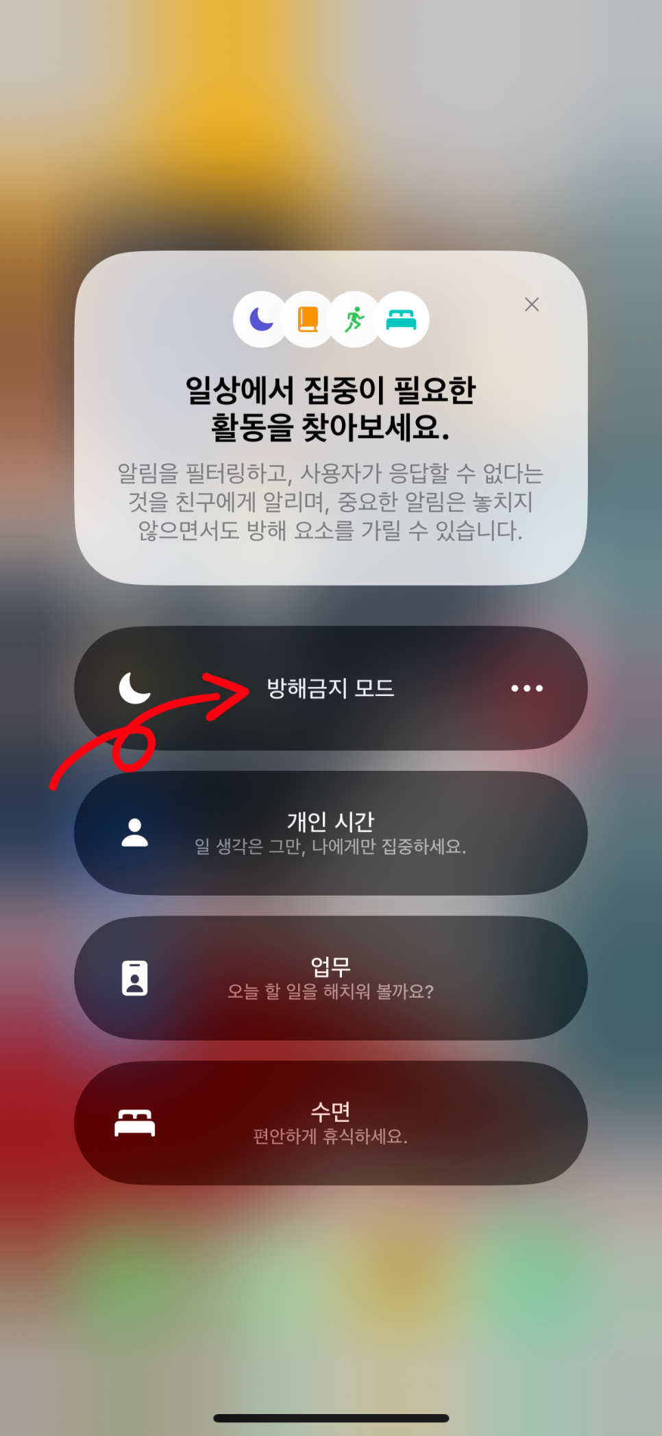 참고로 방해금지 모드를 켜면 알림이 뜨지 않을 것으로 깔끔하게 녹화할 수 있다.