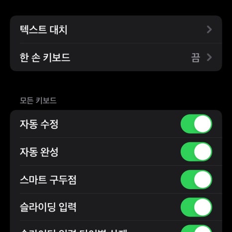 키보드의 정류를 선택한다거나 텍스트 대체,