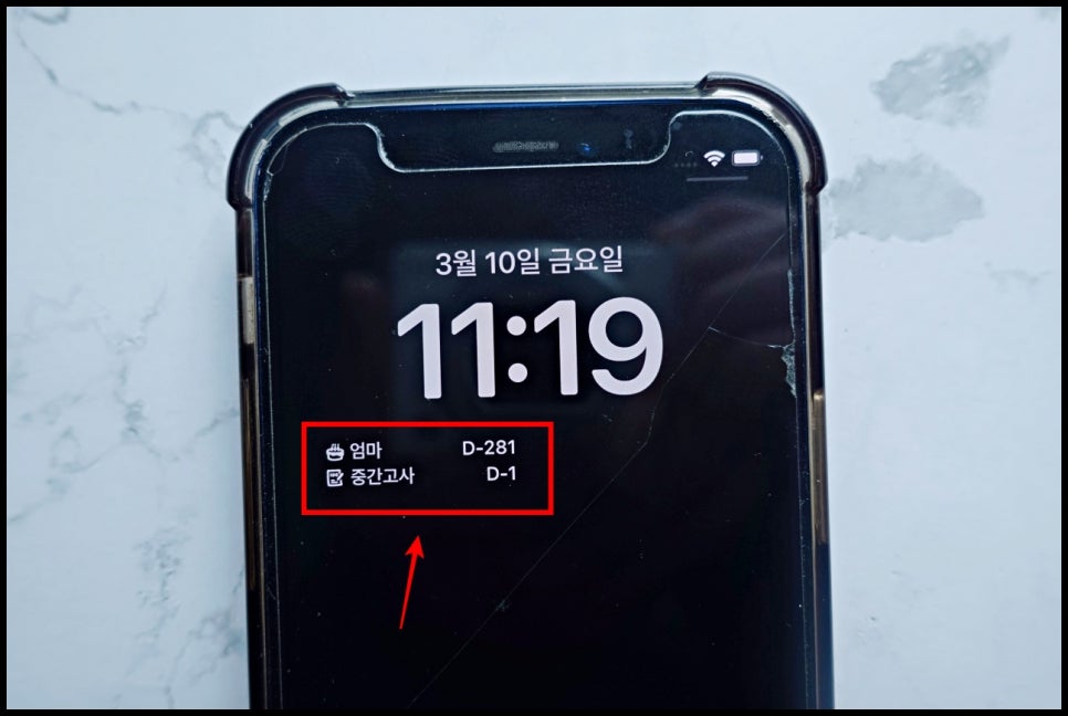 10. 바로 이렇게 말이죠! 이 방법만 제대로 익혀놓으신다면, 여러분은 언제 어디서나 아이폰 잠금화면 디데이 위젯 설정을 할 수 있을 겁니다.