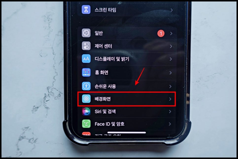 그럼 '배경화면'이라는 메뉴를 찾을 수 있을 거예요. 발견했다면 터치해 줍시다.
