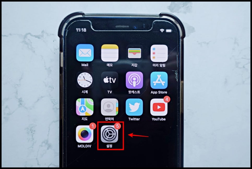 6. 이렇게 '설정' 앱을 눌러서 들어와주셨다면, 손가락을 이용해서 스크롤을 조금만 내려줍시다.