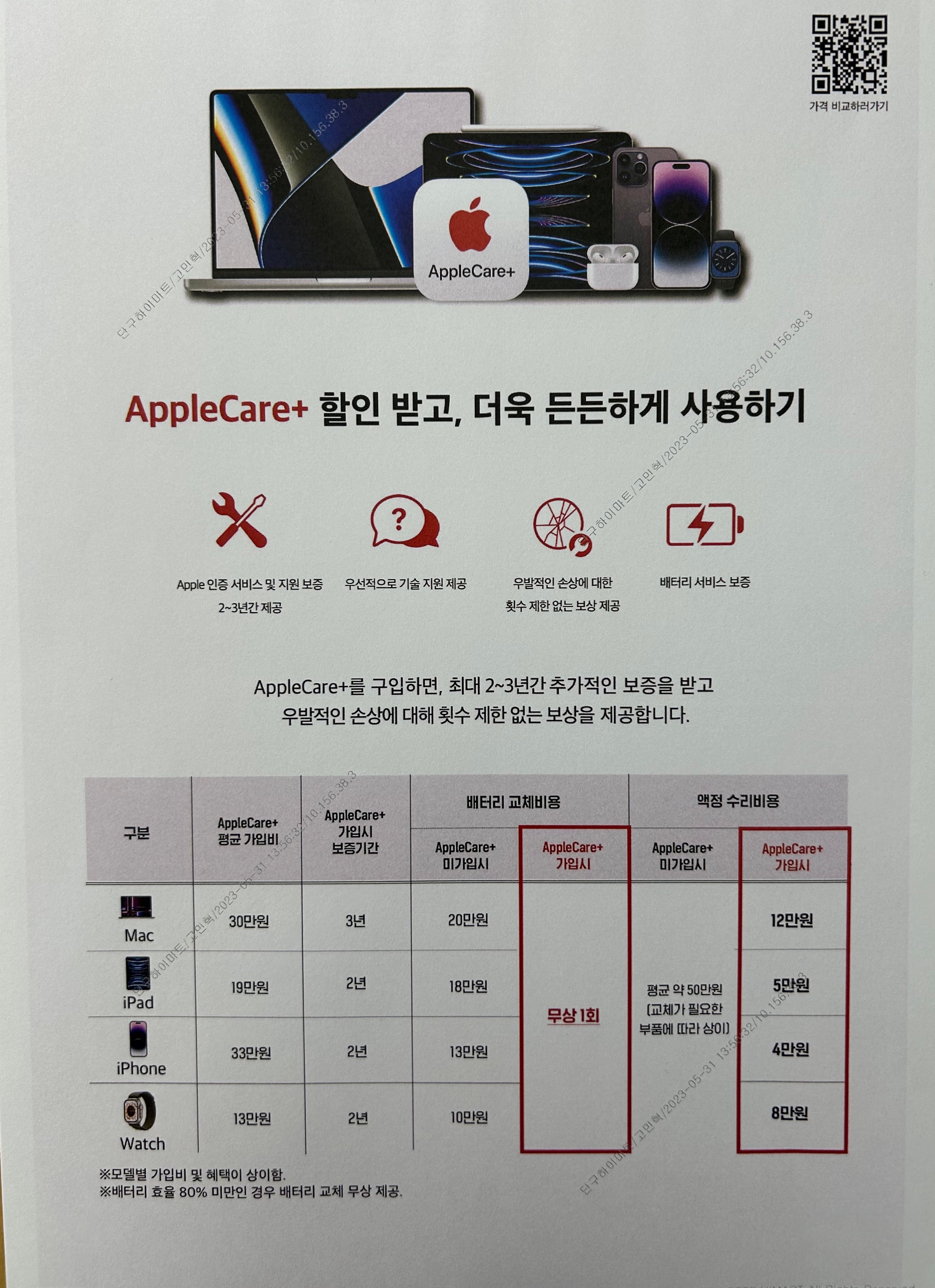 조금 더 자세하게 살펴보면 애플케어 가입시와 미가입시