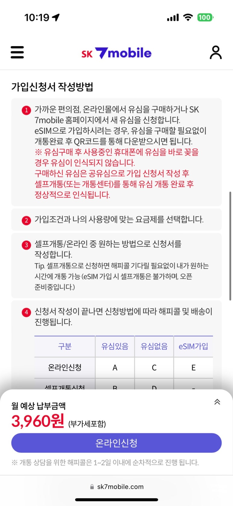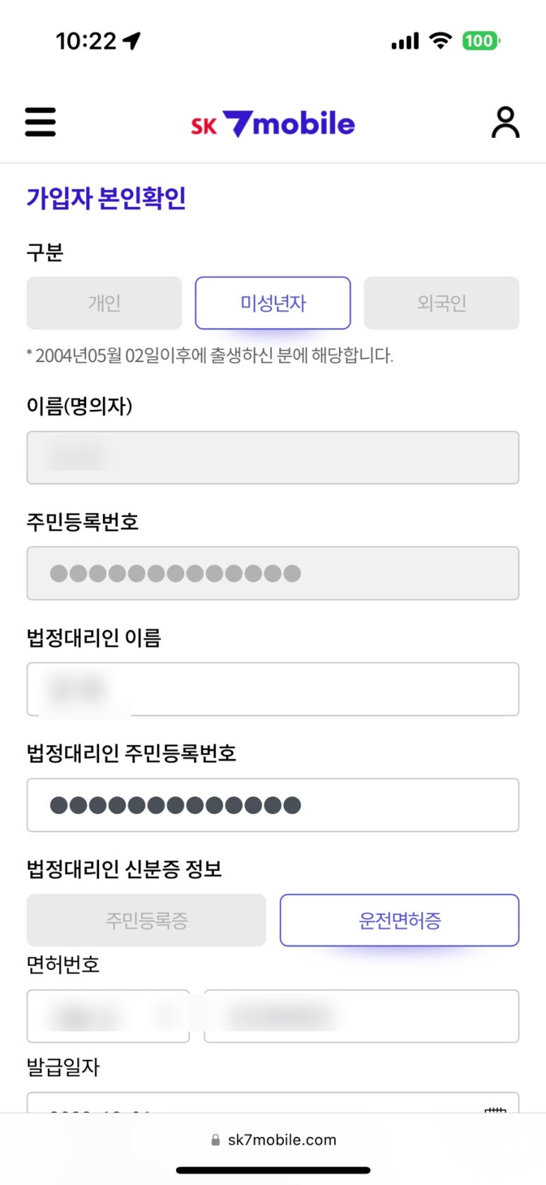 성인은 셀프개통이 바로 가능한데