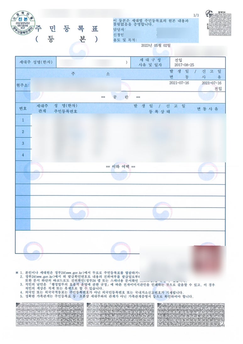 증빙으로 오늘 발급받은 등본도 첨부 합니다!