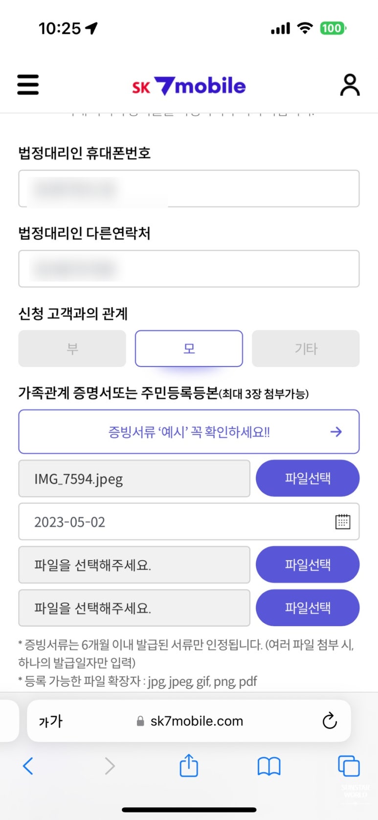 법정대리인엔 저의 정보를 넣었답니다!