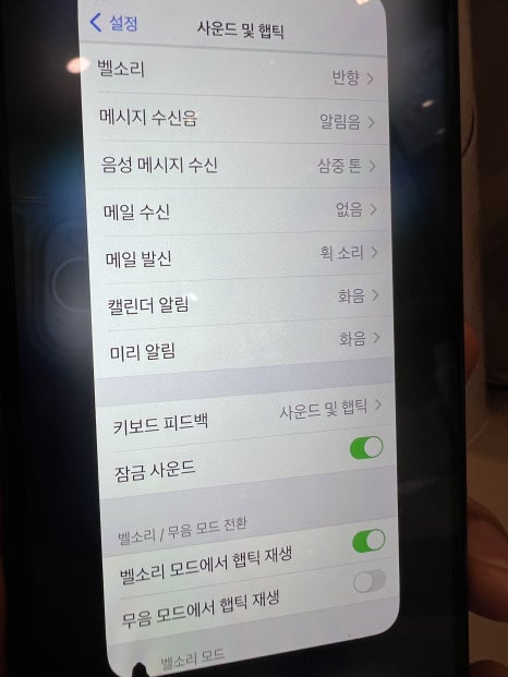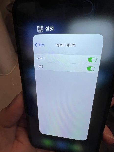 사운드및 햅틱 메뉴로 진입해가지고 아래쪽을 보면 키보드 피드백 설정이 있는데 거기에 있는 사운드 카테고리 우측에 있는 버튼이 보이실겁니다 해당 버튼을 누름으로서 기능을 켜거나 끌수있어요 누르게되면 누르자마자 바로 변경사항이 적용됩니다!