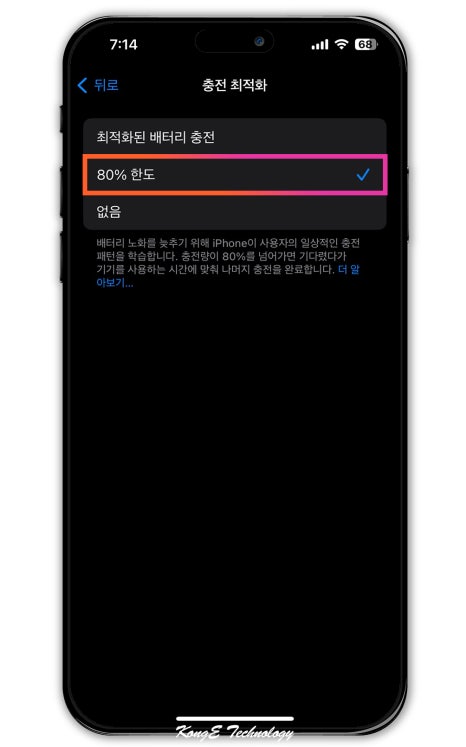 참고로 iPhone 15 모델에는 더욱 스마트한 '충전 최적화' 기능이 추가되었는데요. 앞서 말씀드렸다시피 최적의 배터리 충전 상태는 20%~80% 사이를 유지하는 것이 좋은 만큼, 최대 충전 상태를 80% 한도에 맞춰두면 조금 더 효율적인 사용이 가능합니다.