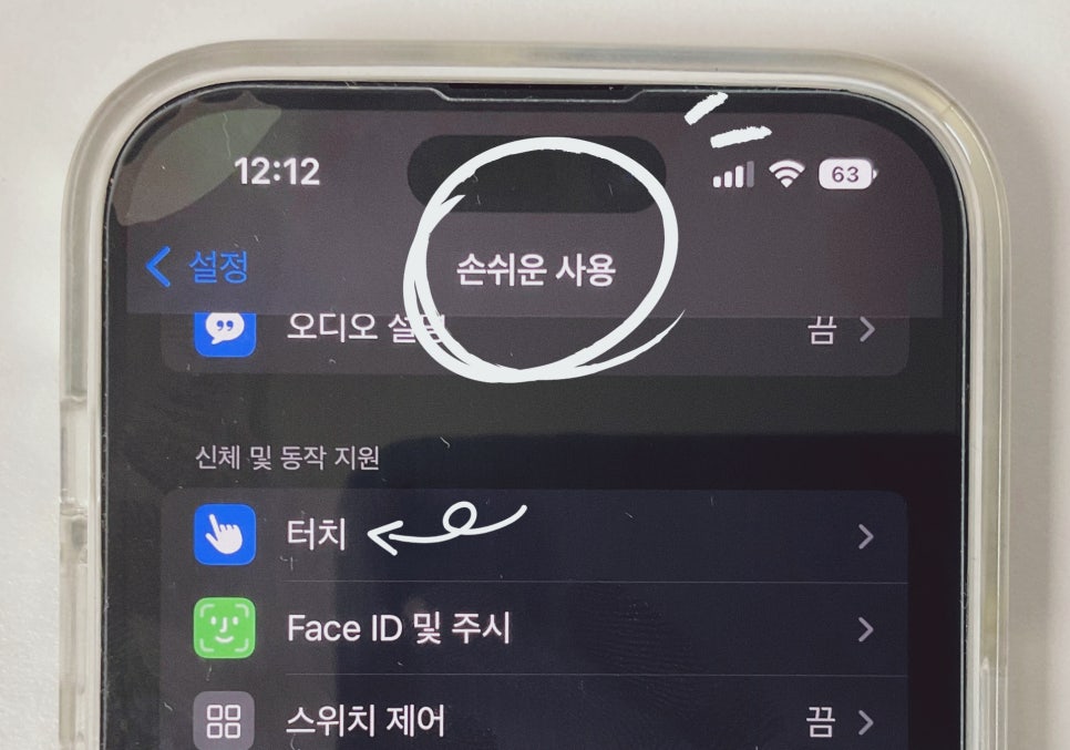 1. 아이폰 설정 앱을 실행한 뒤 손쉬운 사용을 선택하고 터치를 선택합니다.