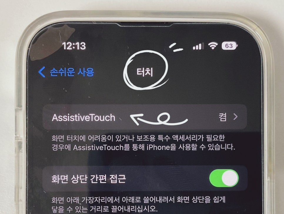 손쉬운 사용 AssistiveTouch 버튼에 재시동 설정