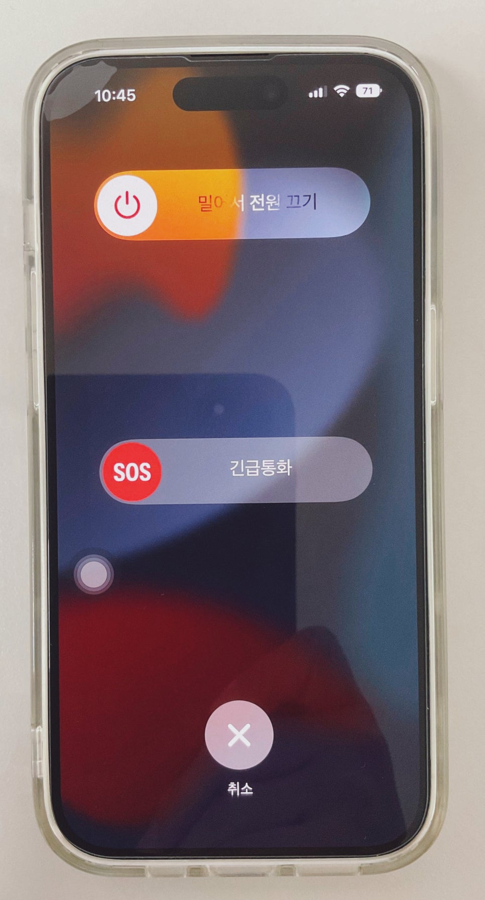 밀어서 전원 끄기 버튼이 나오더라도 전원 버튼을 계속 길게 눌러야 전원이 꺼졌다가 다시 켜지면서 재시동이 됩니다. 여기서 밀어서 전원 끄기를 누르면 재부팅 되는 것이 아니라 전원이 꺼지게 돼요.