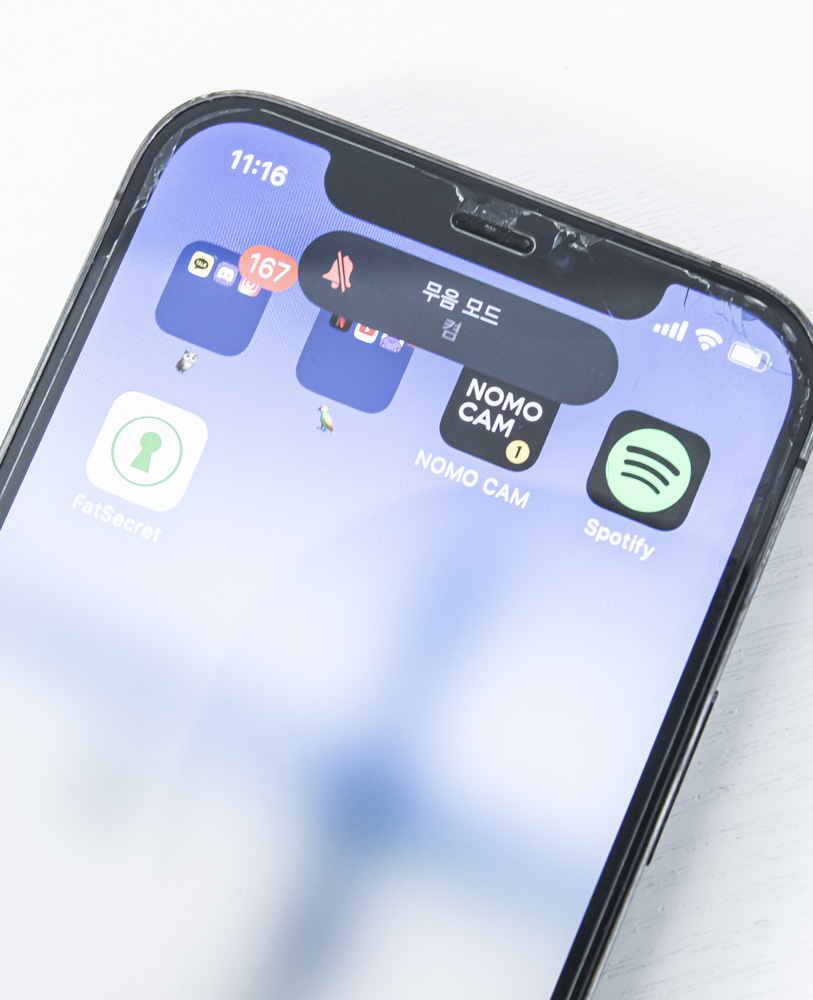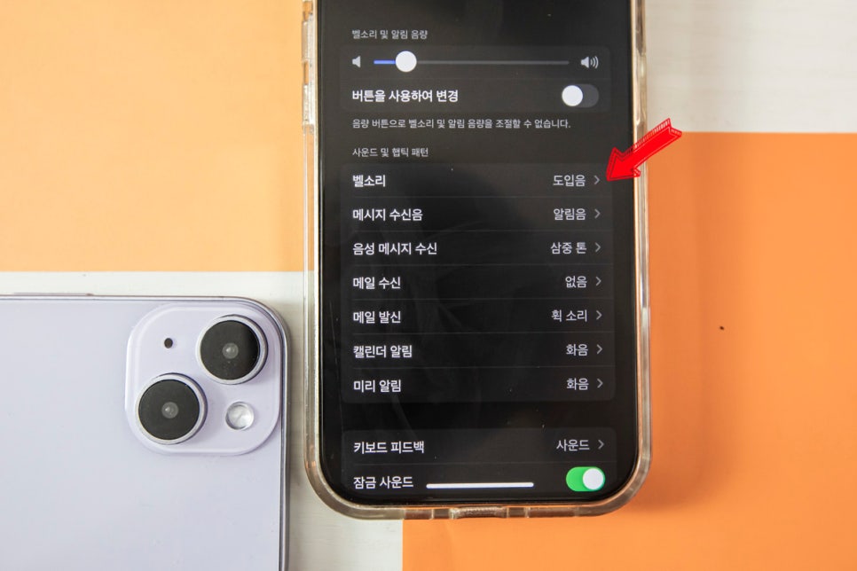 반대로 빨간색이 보이지 않게 버튼을 올려두면 벨소리로 전환할 수 있게 해 둔 것이 물리적 버튼이 하는 일입니다.