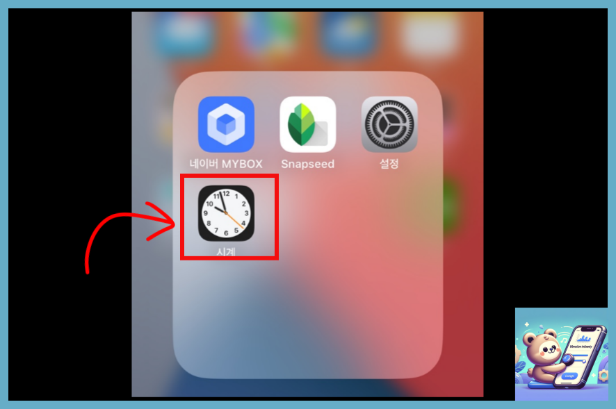 다음은 알람 소리는 끄고 진동으로만 설정하는 방법입니다. 먼저 아이폰 알람 진동 모드를 설정하기 위해 "시계" 앱을 실행시켜줍니다.