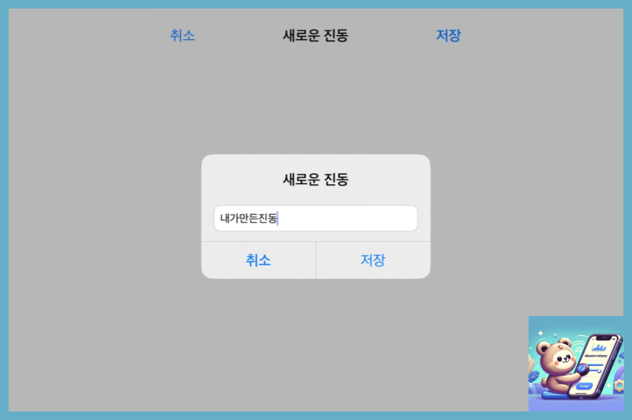저장 버튼 누르고 새로운 진동에 대한 "이름" 설정이 필요합니다. 이름을 입력해 주고 "저장" 선택해 주세요