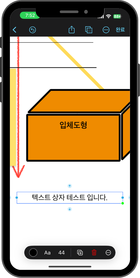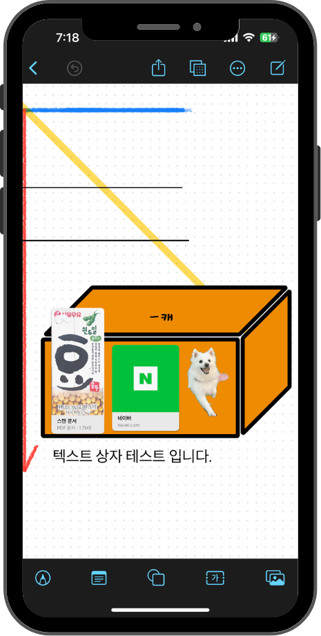 메모스티커를 선택하면 기본 '노란색'의 포스트잇 이생성되는데요. 두번 터치하면 텍스트를 입력할 수 있습니다. 텍스트 글꼴 및 포스트잇 색상도 변경할 수가 있었습니다. 기본적인 기능으로 특별한 건 없었습니다.