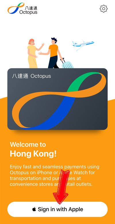 저는 실물 카드 없이 만들기 위해 'Octopus for Tourists' 앱으로 들어갔어요.▼ 애플 아이디로 간단하게 가입할 수 있어요.