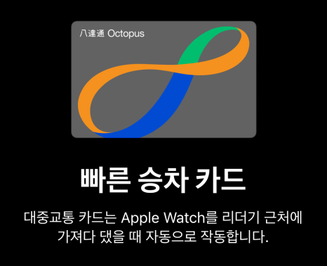 그러면 아이폰 지갑에 있던 옥토퍼스카드가 애플워치 지갑으로 이동합니다.