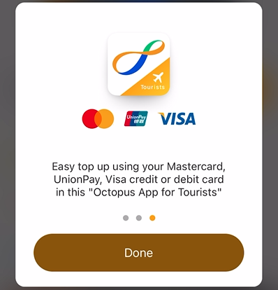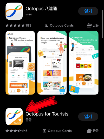 2) Octopus for Tourists : 홍콩 번호가 없는 여행자들을 위한 앱(실물 카드 없이 애플페이로 일반 옥토퍼스 카드 등록 가능한 앱. 이걸로 만들면 1번 앱과 자동 연동됨)
