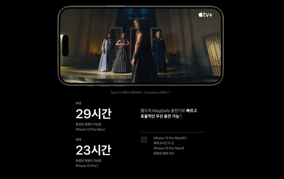 3. 동영상 재생 시간: 애플의 공식 발표에 따르면 아이폰 15 프로는 최대 23시간 동안 동영상을 재생할 수 있다고 합니다. 이는 실제 업무 환경에서의 사용 시간과는 차이가 있을 수 있습니다.