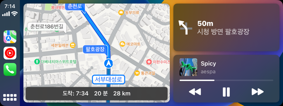 기본 지도 앱을 제외하면 최적화의 애플답게 경쟁 안드로이드 오토에 비해 반응도 빠르고, 터치 감도도 훨씬 부드러웠으며, 아이콘이나 애니메이션이 부드러워 조작 편의도 용이한 측면이 있었습니다. 확실히 모든 면에서 안드로이드를 압도하는 애플 카플레이인데요. 아이폰을 사용하는 분이라면 유선 케이블로 쉽게 이용할 수 있고, 현대차 기아차가 아니라 르노코리아 자동차 등 다른 차량에서는 무선으로도 이용이 가능하니 참고하시면 도움이 되겠습니다.