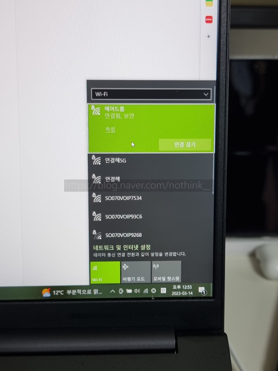 절차에 따라 진행됐다면 연결됨 표시가 나타나며 인터넷을 사용하면 되겠습니다.