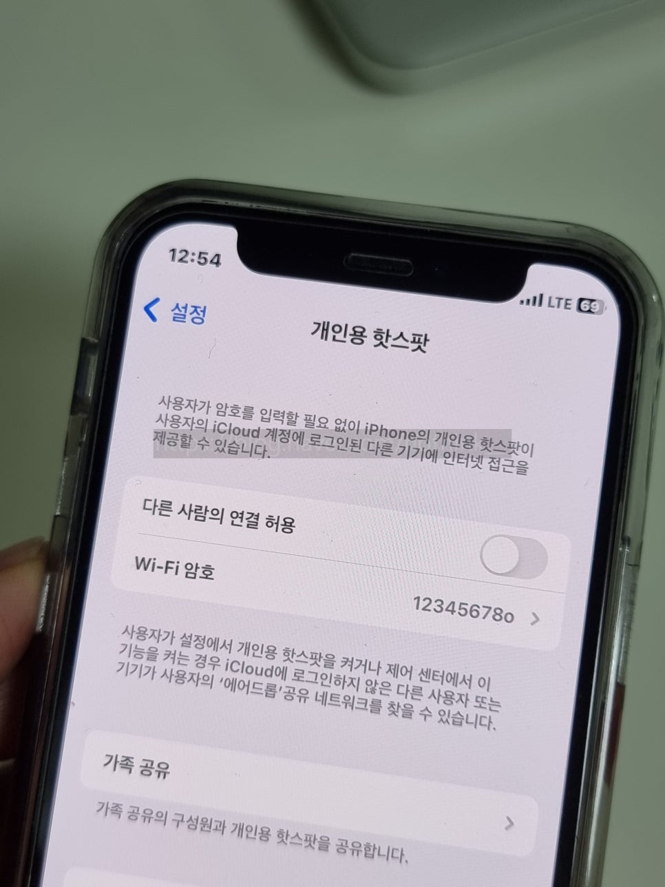 개인용 핫스팟 항목으로 넘어왔다면 다른 사람의 연결 허용을 비활성화에서 활성화로 전환하여 줍니다.