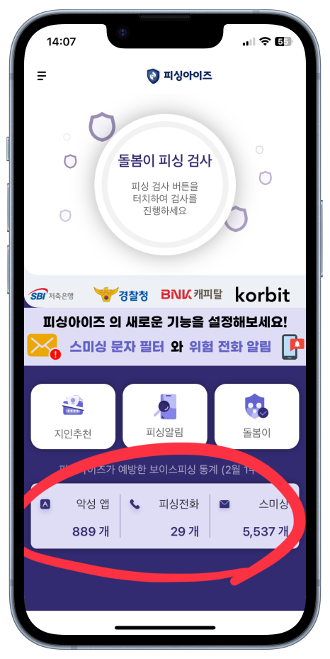사용자의 스마트폰에 설치된 악성 앱을 탐지하고, 보이스피싱이 의심되는 전화나 스미싱 메시지를 감지할 때 알림을 주는 기능을 갖추고 있죠.