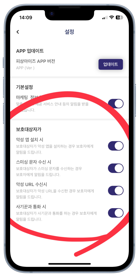 또한, [돌봄이] 기능을 통해 가족이나 지인을 보호 대상자로 등록하면, 그들의 스마트폰에서 악성 앱이 설치되거나 위험한 메시지를 수신할 경우, 사용자에게 즉시 알람을 보내주는데요.