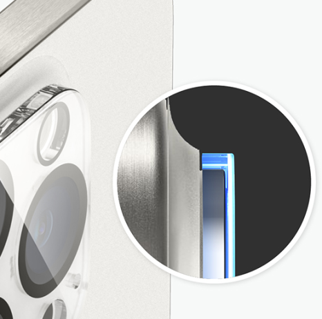 엘라고 아이폰15 프로 9H 카메라 렌즈 강화 유리 보호 필름은 밑에 사진에서 보시는 것과 같이 돌출형 카메라 전체를 덮어주는 구조 사이까지 딱 맞아서 아이폰 15 프로 카메라 렌즈부와 어긋나는 부분 없이 초보자라도 같단히 부착이 가능할 정도 입니다.