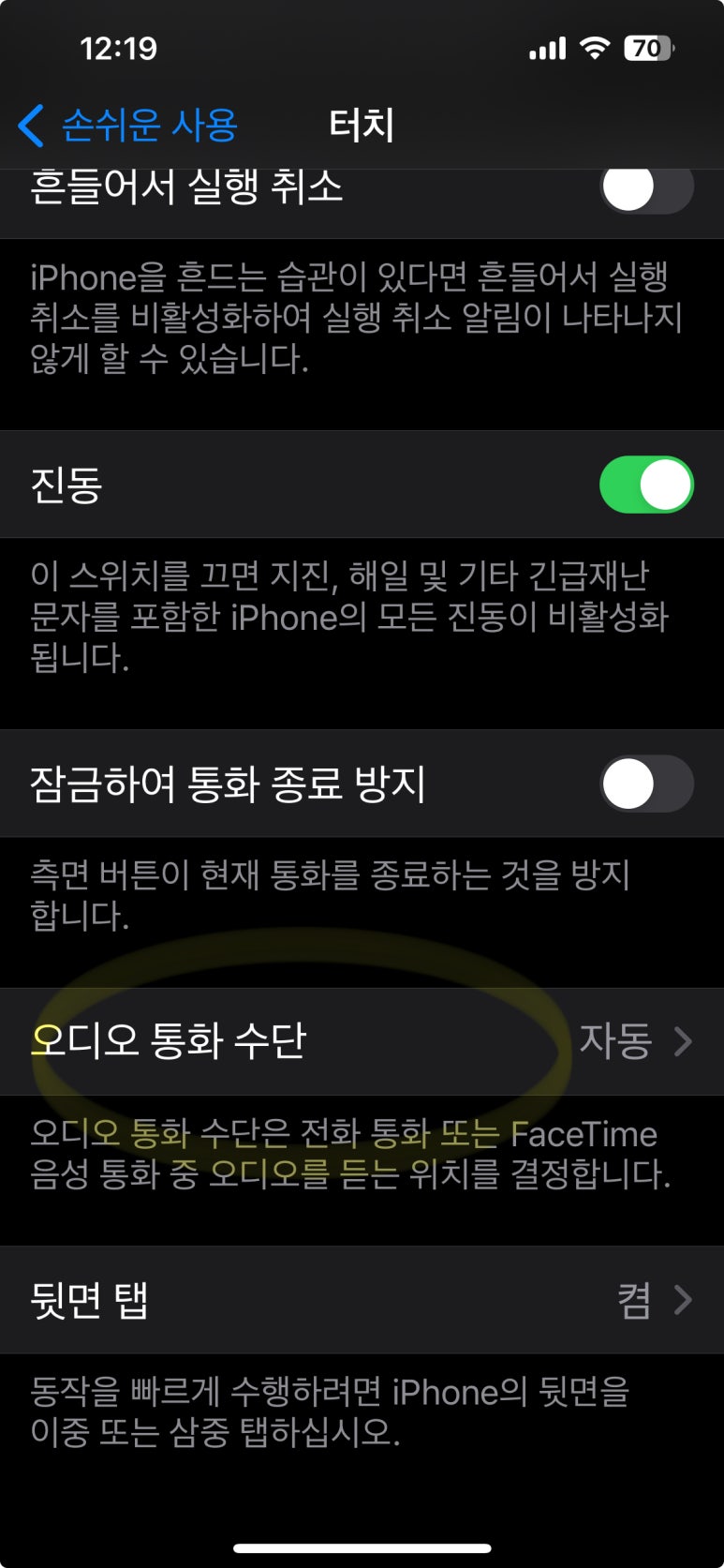 2. 설정 - 손쉬운 사용 - 터치 - 오디오 통화수단....이게 자동으로 되어 있으면 됩니다