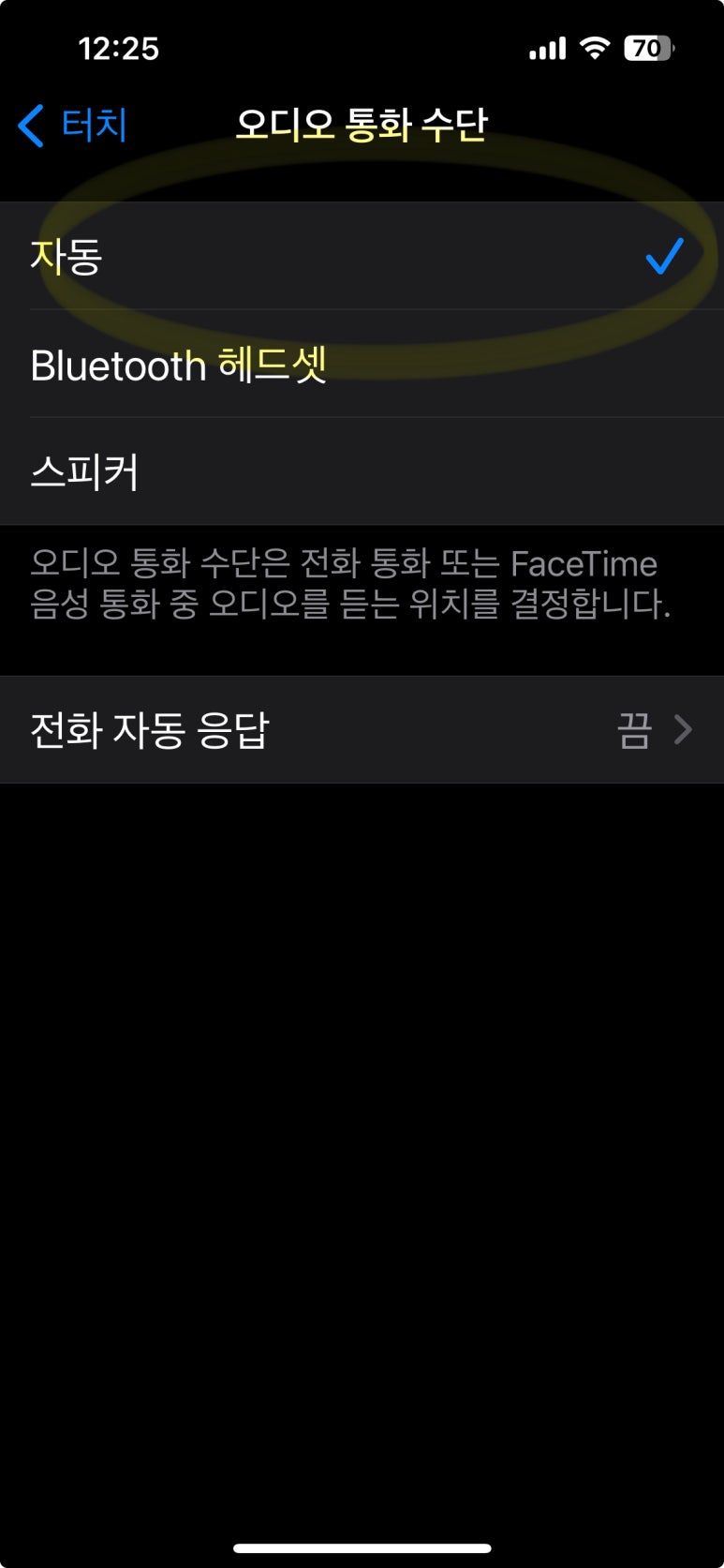 자동으로 되어 있거든요...위의 1, 2번 모두 잘 설정 되어있어요...그런데 저의 아이폰은 전화걸때 스피커폰으로 연결됩니다...