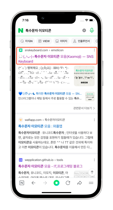 에 특수문자나 이모티콘이라고 검색을 하면 나오는 'snskeybord'사이트로 이동해 주세요. 여기서 기분이나 상황에 따라 원하는 스타일의 내용이 있는 emoticon을 선택하여 터치해 주면 복사가 완료됩니다.