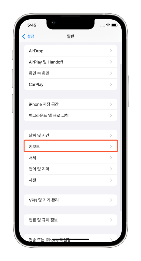 매번 복'붙을 할 필요 없이 간단한 방법으로 이용하고 싶을 땐 텍스트대치를 이용하시면 됩니다. 핸드폰 기본 설정에서 일반으로 이동하여 키보드를 탭해 주세요.