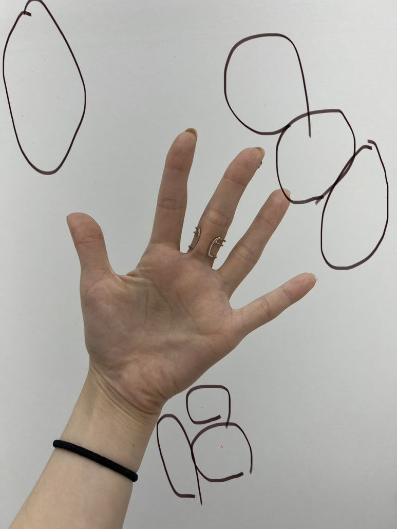 흰색 매장 벽에서 찍은 내 손사진인데