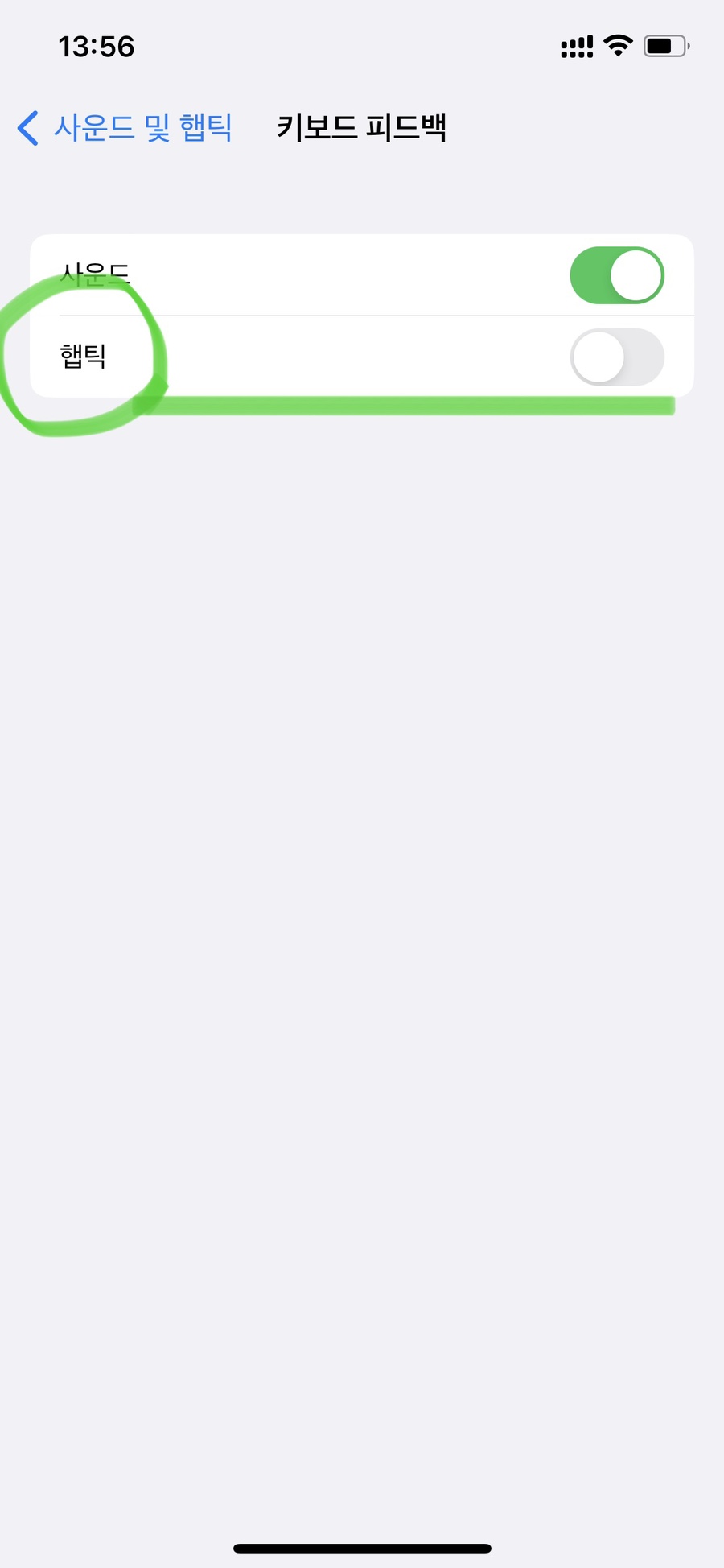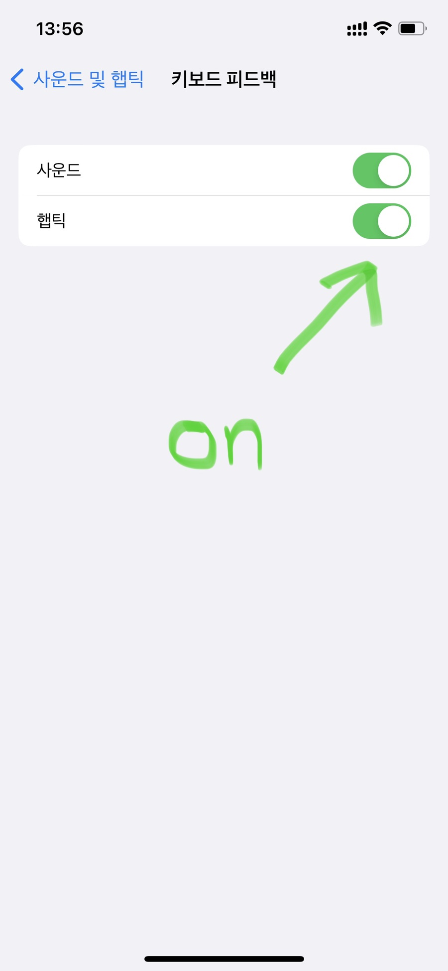 이로써 키보드 햅틱 반응 설정하기는 끝이 납니다.