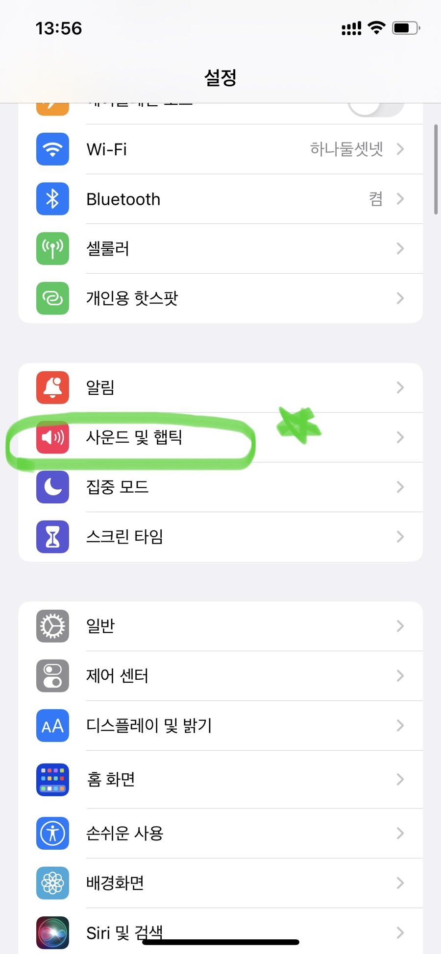 설정 목록에서 "사운드 및 햅틱" 선택!