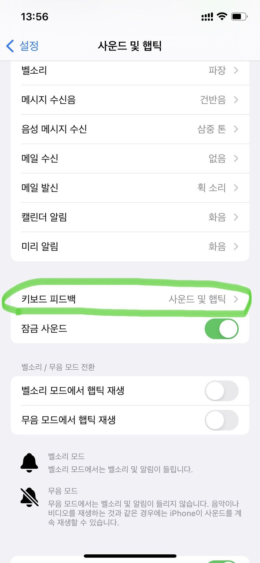 "키보드 피드백" 선택!