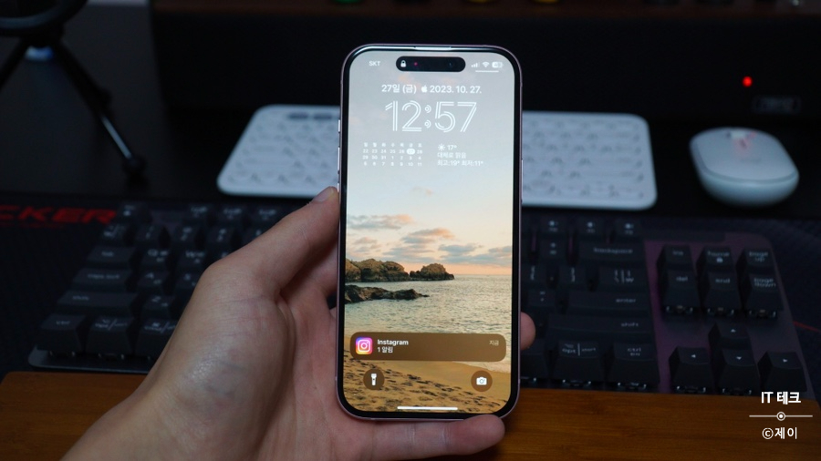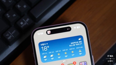 먼저 아이폰 15부터 다이나믹 아일랜드가 탑재 된 디스플레이로 변경이 되었죠. 프로 모델과 차별 때문에 일반 모델에도 지원하게 되었는데 확실히 이제 신형 느낌이 나서 매우 만족스럽습니다. 이제 실시간으로 재생되는 앱 중 음악이나 녹음 영상 재상 여부 등 애니메이션으로 쉽게 확인할 수 있고 앞으로도 다양한 앱에 지원하는 걸 생각한다면 희소식 중 하나라 볼 수 있죠.