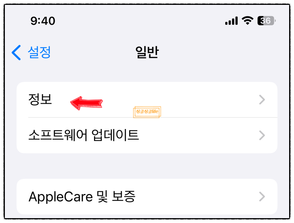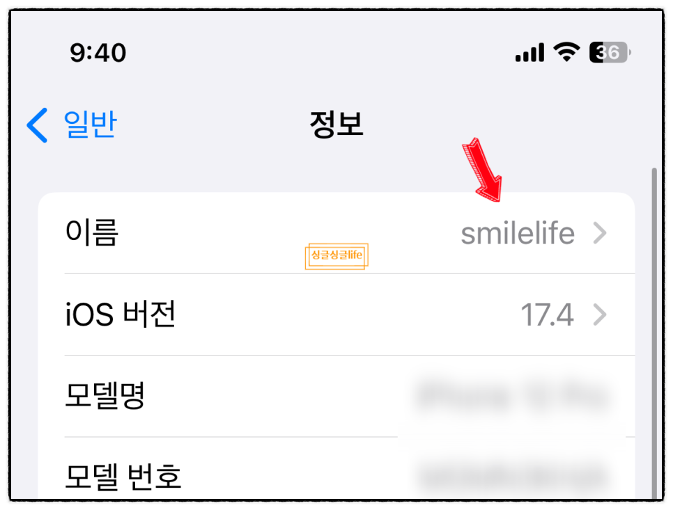 1. 설정 - 일반 - 정보 - 이름으로 들어갑니다.