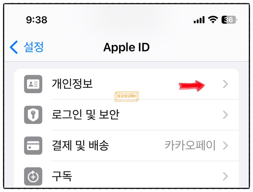 2. 개인정보를 눌러줍니다.