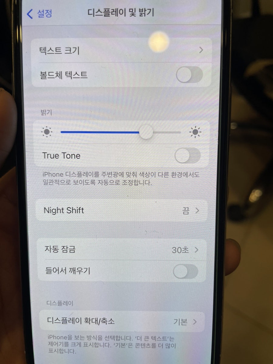 설정한 실행하셨다면 제어 센터 메뉴와 홈 화면 메뉴 사이에 있는 디스플레이 및 밝기 메뉴를 선택 해 주세요!