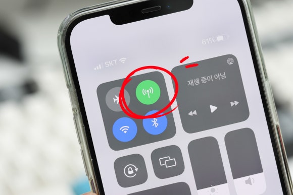 제어센터를 열어서 [셀룰러]가 정상적으로 켜져 있는지 확인을 하세요.
