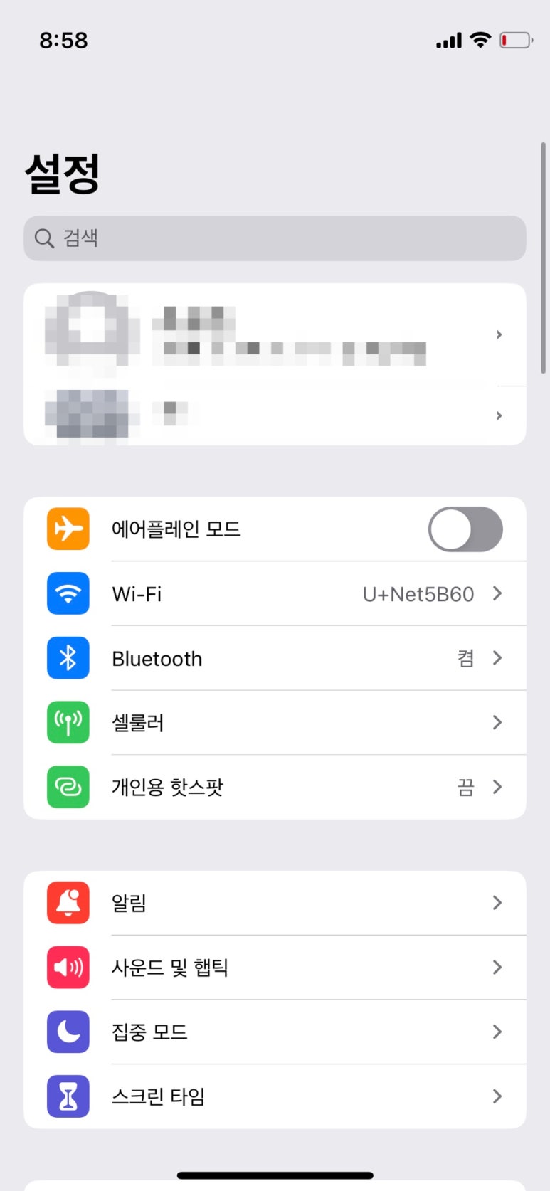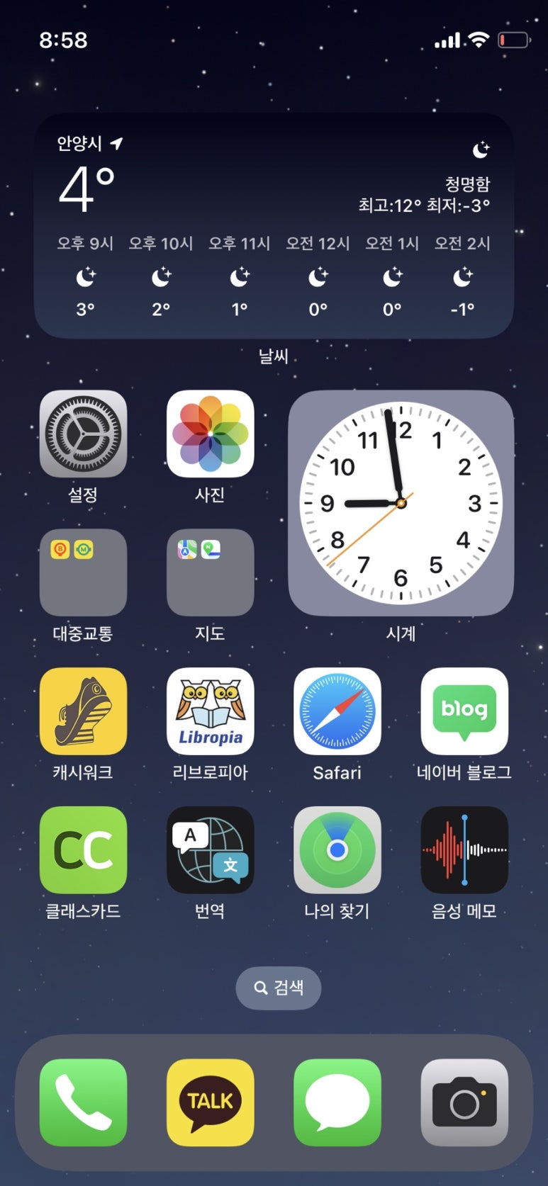 맨 위에 검색이 나와야 하는데 나오지 않는 다면 위로 올리면 검색창이 생깁니다.