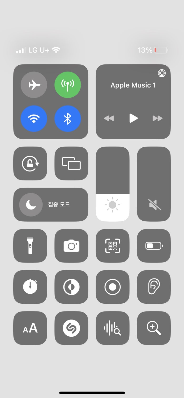 제어센터는 어른쪽 위를 아래로 당기면 볼 수 있습니다.