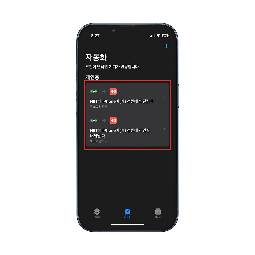 아이폰 충전 단축어