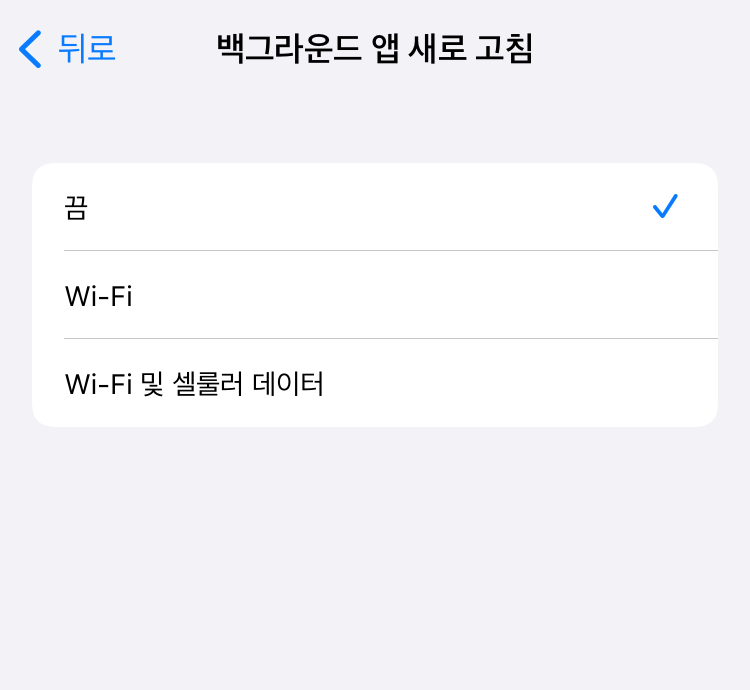 - Wi-Fi 셀룰러 데이터는 항상 백그라운드 앱 새로 고침을 하는 것이라고 생각하시면
