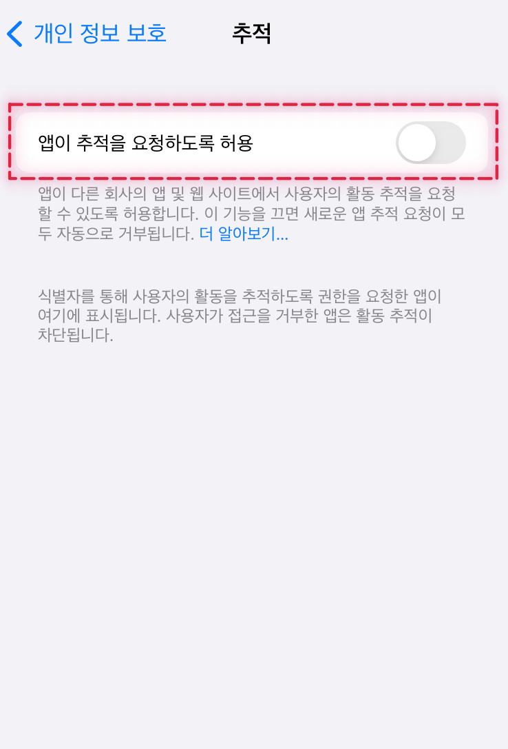 아이폰 설정 --> 개인정보 보호 --> 추적 --> 앱이 추적을 요청하도록 허용