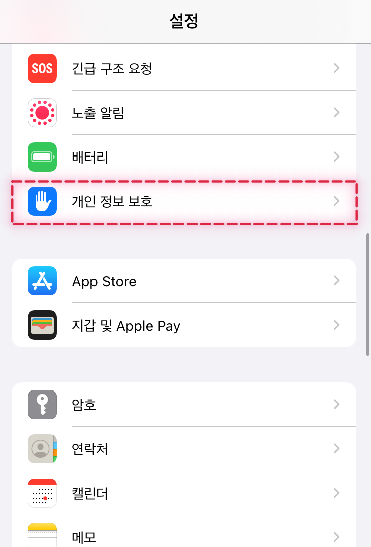 현재는 한국에서 사용하지 않는 Apple Pay는 잠시 꺼두어도 좋습니다.