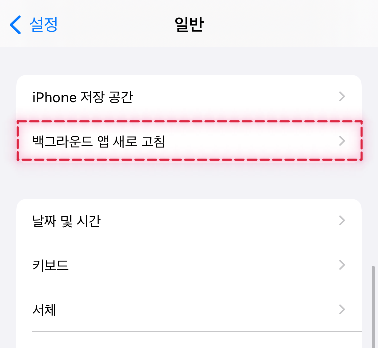 아이폰 설정 --> 일반 --> 백그라운드 앱 새로 고침